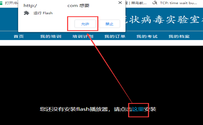 4,谷歌浏览器或者其他极速浏览器里,会偶尔出现“您还没有安装flash播放器,请点击这里安装”的提示,如下: